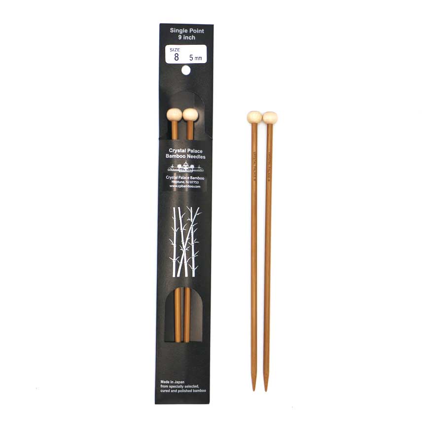 Pick up a pair of Crystal Palace Bamboo 9” single pointed needles and you may never want to put them down. The exquisitely smooth surface and durability of the highest quality Japanese bamboo make knitting with these lovelies a very enjoyable activity. The needles are steam-cured and polished with a plant-based wax for a silky finish, so your stitches glide easily as you work. This length is a superb choice for making scarves. Available in sizes 0 (2.00 mm) to 19 (15.00 mm).